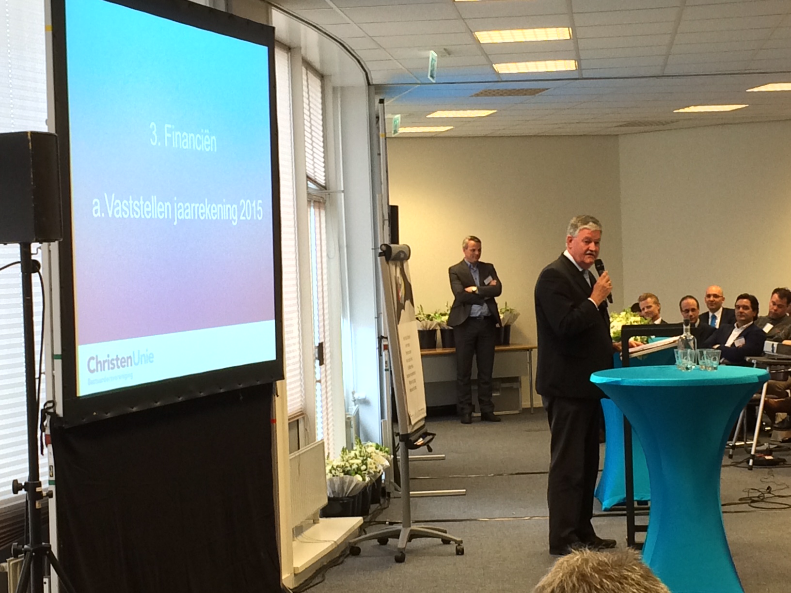 Er was een mooi programma samengesteld voor deze dag en er was ook volop ruimte om te netwerken. Er waren interessante deelsessies waarin onze Tweede Kamerleden hun enthousiasme en kwaliteiten weer toonden. We kunnen echt trots zijn op deze mensen, net als op de vele bewogen bestuurders en leden die onze partij kent. Op zo’n dag wordt duidelijk dat er vele talenten rond lopen. In het huishoudelijke deel van de bestuurdersvereniging presenteerde penningmeester Govert van Bezooijen mooie cijfers. Hij was ook aftredend en niet meer herkiesbaar. Voorzitter Ard Kleijer sprak hem toe met woorden van dank en waardering. ’s Middags was er de verkiezing van partijleider. Unaniem werd op voordracht van het partijbestuur Gert-Jan Segers gekozen. Met een staande ovatie werd zijn verkiezing bevestigd. Aansluitend een warm, krachtig en bewogen betoog van deze nieuwe partijleider. Politiek van hoop. Klaar voor de Tweede Kamerverkiezingen van 2017. We kunnen en mogen heel dankbaar zijn met Gert-Jan Segers als ons boegbeeld.